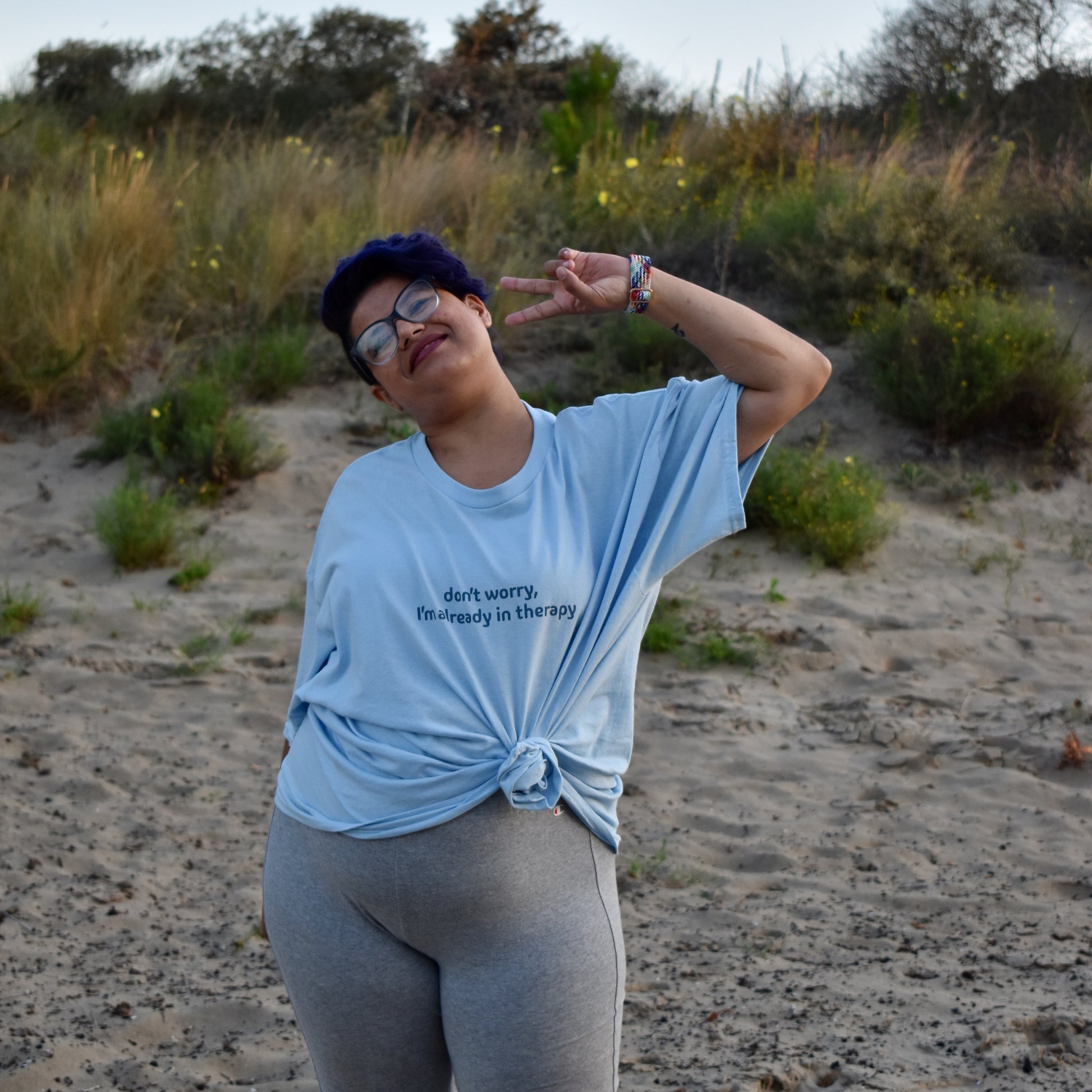The 100% cotton unisex classic tee will help you inform those around you that in fact, you are taking care of your mental health ;)